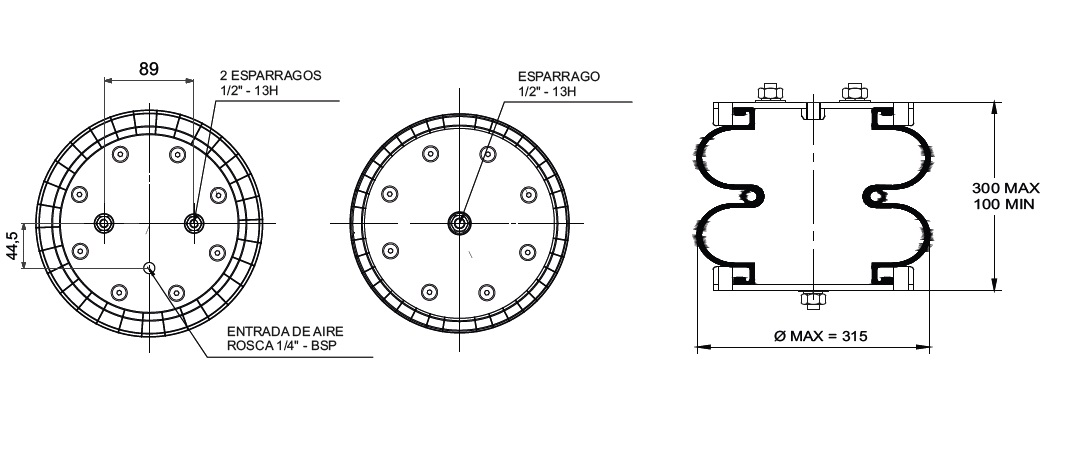 CAM.DE AIRE BILOBULAR TIPO 4 - CON 2 ESP. 1/2" (SUP) - ESP. CTRAL. 1/2" (INF)