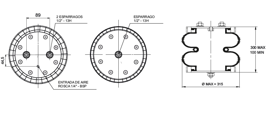 CAMAR DE AIRE BILOBULAR C/SUPLEM.TIPO 4 - BOERO- 2 ESP. 1/2" (SUP) - ESP. CENTRAL 1/2" (INF)