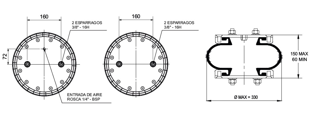 CAMARA DE AIRE MONOLOBULAR TIPO1 - CON ESP.3/8" (SUP) - ESP 3/8" (INF)