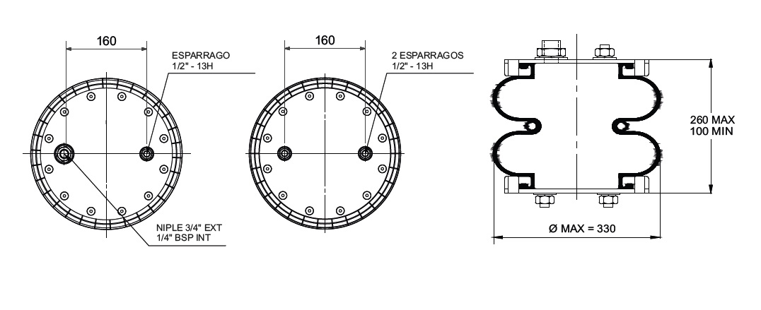 CAMARA DE AIRE BILOBULAR TIPO 1 - C/ESP. 1/2" Y NIPLE 3/4" (SUP) - 2 ESP. 1/2" (INF)