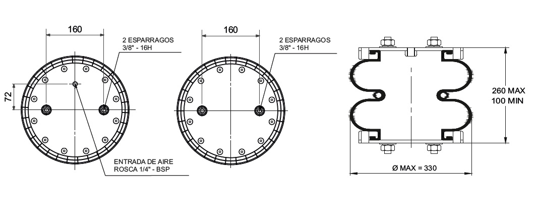 CAMARA DE AIRE BILOBULAR TIPO3 - C/ 2 ESP. 3/8" A 160 MM (SUP) - 2 ESP. 3/8" A 160 MM. (INF)