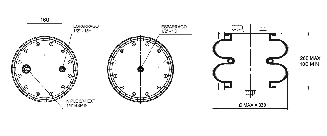 CAMARA DE AIRE BILOBULAR TIPO 5 - CON ESP. Y NIPLE A 160MM (SUP) - ESP.CTRAL.(INF) CONJ.VULCANO