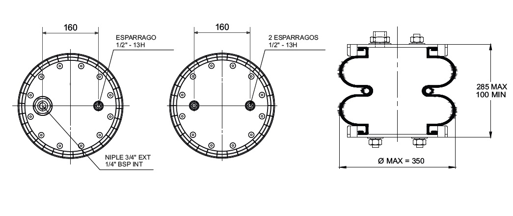 CAMARA DE AIRE BILOBULAR C/SUPLEM.TIPO 1 - C/ESP. 1/2" Y NIPLE 3/4" (SUP) - 2 ESP. 1/2" (INF)