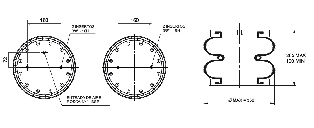 CAMARA DE AIRE BILOBULAR C/SUPLEM.TIPO 4 - C/INSERTOS 8MM (SUP.) - INSERTOS 8MM (INF)