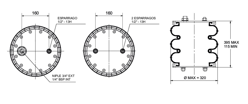 CAMARA DE AIRE TRILOBULAR TIPO 1 - C/ESP. 1/2" Y NIPLE 3/4" (SUP) - 2 ESP. 1/2" (INF)