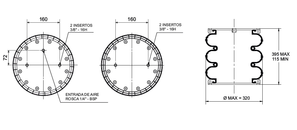CAMARA DE AIRE TRILOBULAR TIPO 4 - C/INSERTOS 8MM (SUP) - INSERTOS 8MM (INF.)