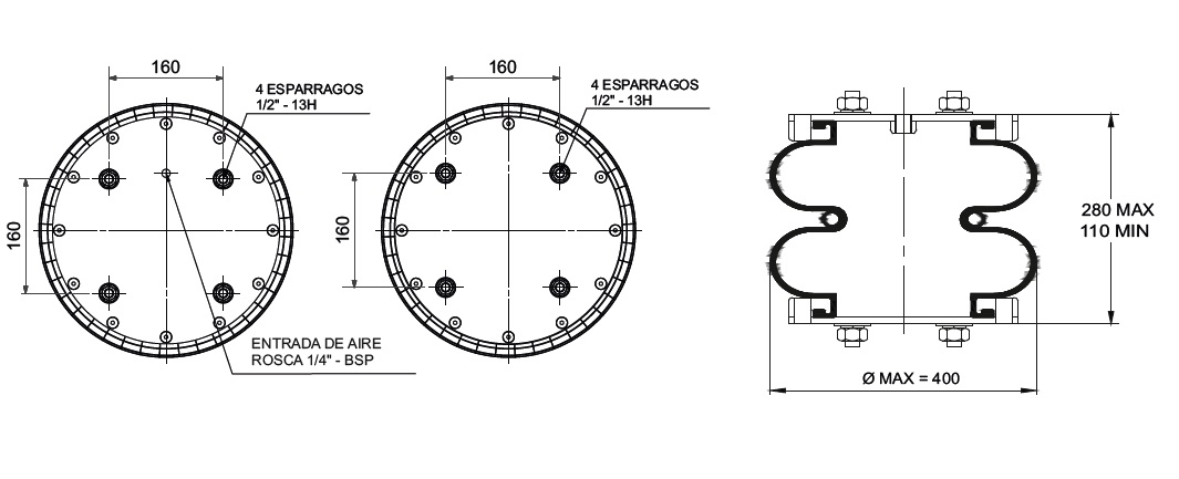 CAMARA DE AIRE BILOBULAR C /SUPLEM. TIPO 1 - C/4 ESP.1/2" A 160MM EN (SUP.) E (INF.)