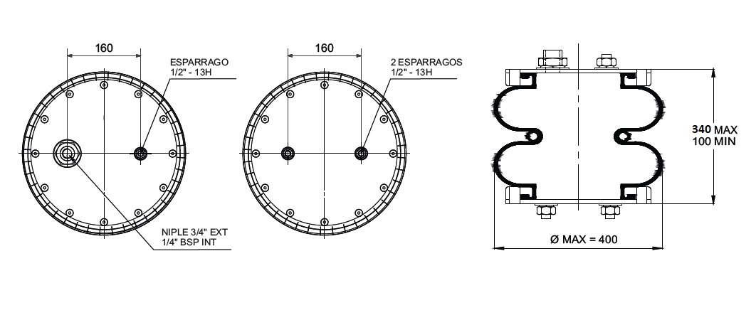 CAMARA DE AIRE BILOBULAR C/SUPLEM. -TIPO 2 C/ESP. 1/2" Y NIPLE 3/4" (SUP) - 2 ESP. 1/2" (INF)