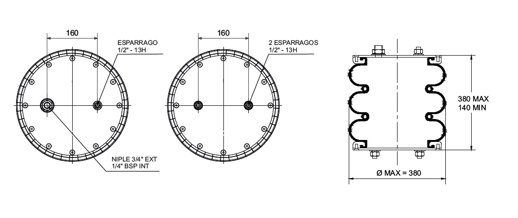 CAM.DE AIRE TRILOBULAR Tipo 2 - C/ESP. 1/2" Y NIPLE 3/4" (SUP) - 2 ESP. 1/2" (INF)