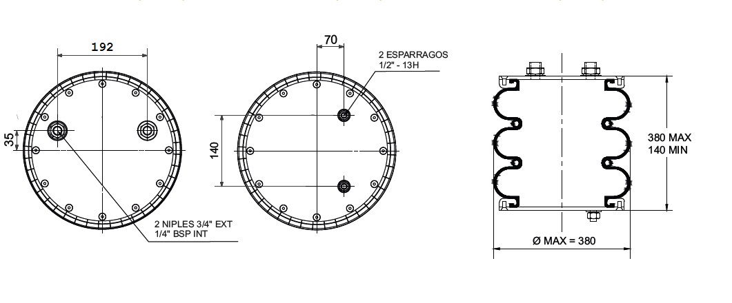 C.DE AIRE TRILOBU.Tipo 4 LKS (DER 90 Grados) - C/2 NIPLES DESP. A 192 MM Y 2 ESP. 1/2" DESP. A140 MM