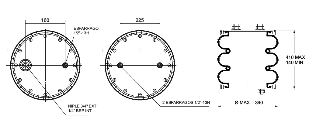 C. DE AIRE TRILOB. C/SUP.C/ESP. 1/2" Y NIPLE 3/4" A 160 MM (SUP) - 2 ESP. 1/2" A 225MM (INF.) RIMEK