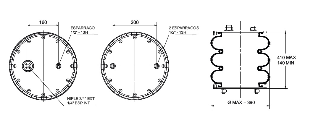 C. DE AIRE TRILOB.C/SUPLEM.TIPO4 - NIPLE Y ESP. A 160 MM SUP - DOS ESP. A 200 MM INF.