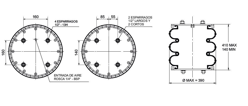 C. DE AIRE TRILOBULAR C/SUPLEM.TIPO6 - C/4 ESP.1/2"(SUP.) - 4 ESP.1/2" (2 L.Y 2 C.) MALDONADO