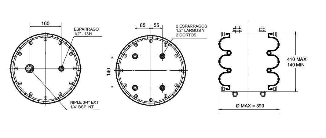 CAMARA DE AIRE TRILOBULAR C/SUPLEM. TIPO 8 - C/ESP 1/2" Y NIPLE 3/4" (SUP) - C/4 ESP 1/2"(INF)