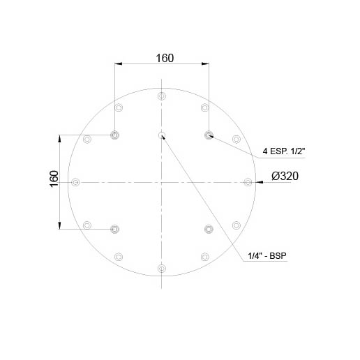 TAPA SUPERIOR C/ 4 ESP. 1/2" A 160mm ENTR. AIRE INS. P/1730/1740/1750