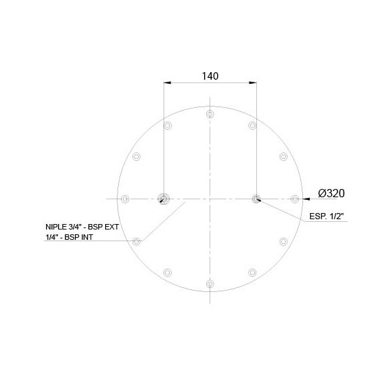 TAPA SUP. C/1 ESP. 1/2" Y 1 NIPLE 3/4"-1/4" A 140mm ENTR.AIRE P/1730/1740/1750