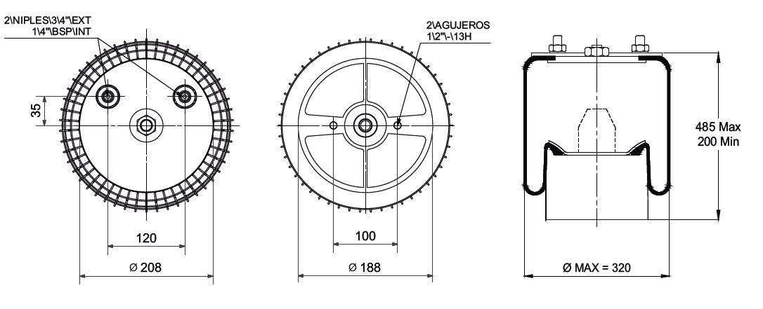 CAMARA DE CARGA TIPO 4 C/BASE PETROLERA Y 2 NIPLES DESPLAZADOS A 120MM.