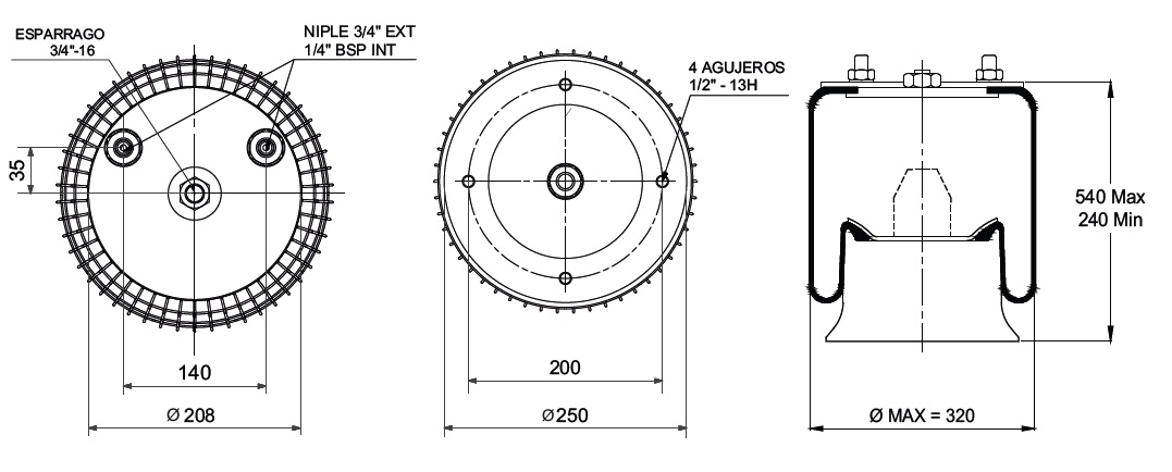 CAMARA DE CARGA TIPO 5 C/NIPLES A 140 DESPL. Y BASE 190MM C/DISC. INF.