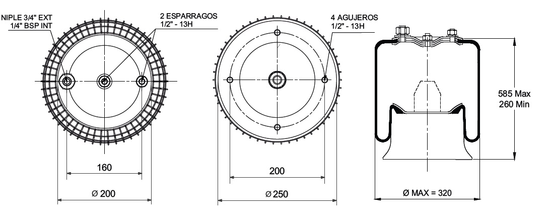 CAMARA DE CARGA TIPO 7 C/ PLAT.SUP. C/ESP. Y NIPLE A 160 MM Y BASE 190MM