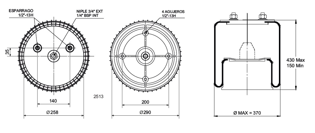 CAMARA DE CARGA TIPO 7 HEIL - C/ 2NIPLES A 140 MM DESPL. CON BASE DE 100MM