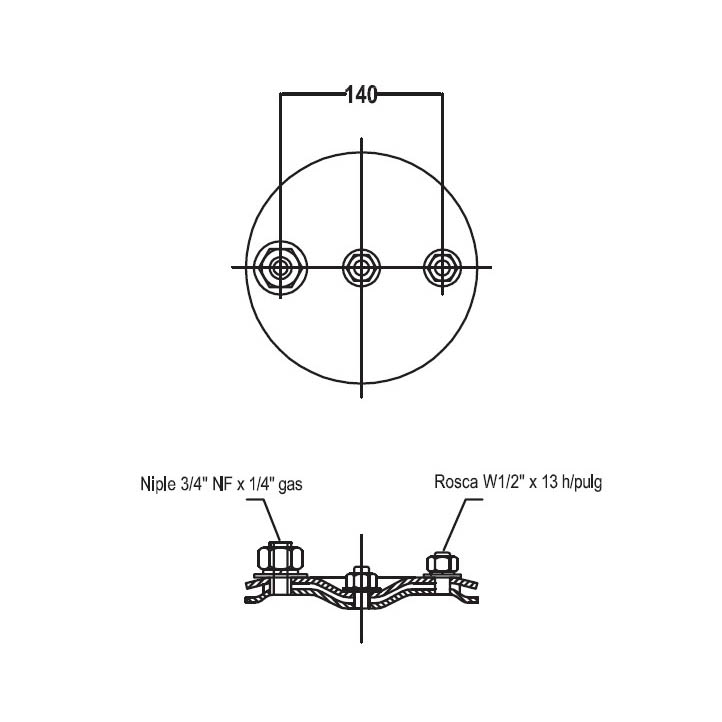 PLAT. SUP. C/NIPLE Y ESP. 1/2" A 140MM. CENTR. P/24XX