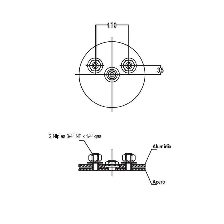 PLAT. SUP.(ALUMINIO) C/2 NIPLES A 110MM. DESPL.A 35MM (VOLVO)