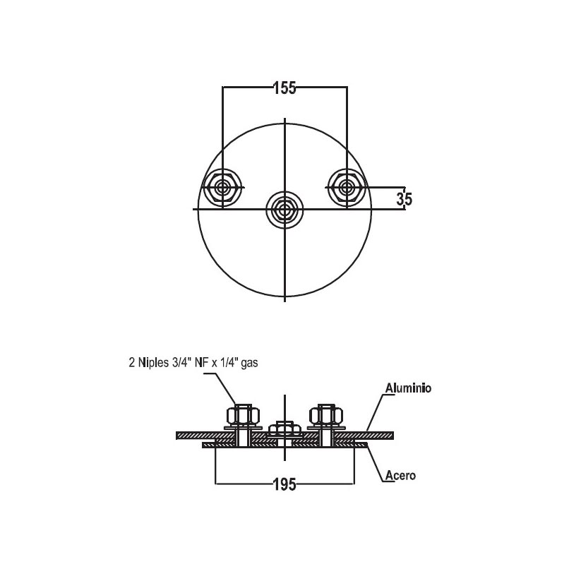PLAT. SUP. (LKS) C/TAPA C/2 NIPLE A 160 MM. DESPL.A 35MM P/25XX
