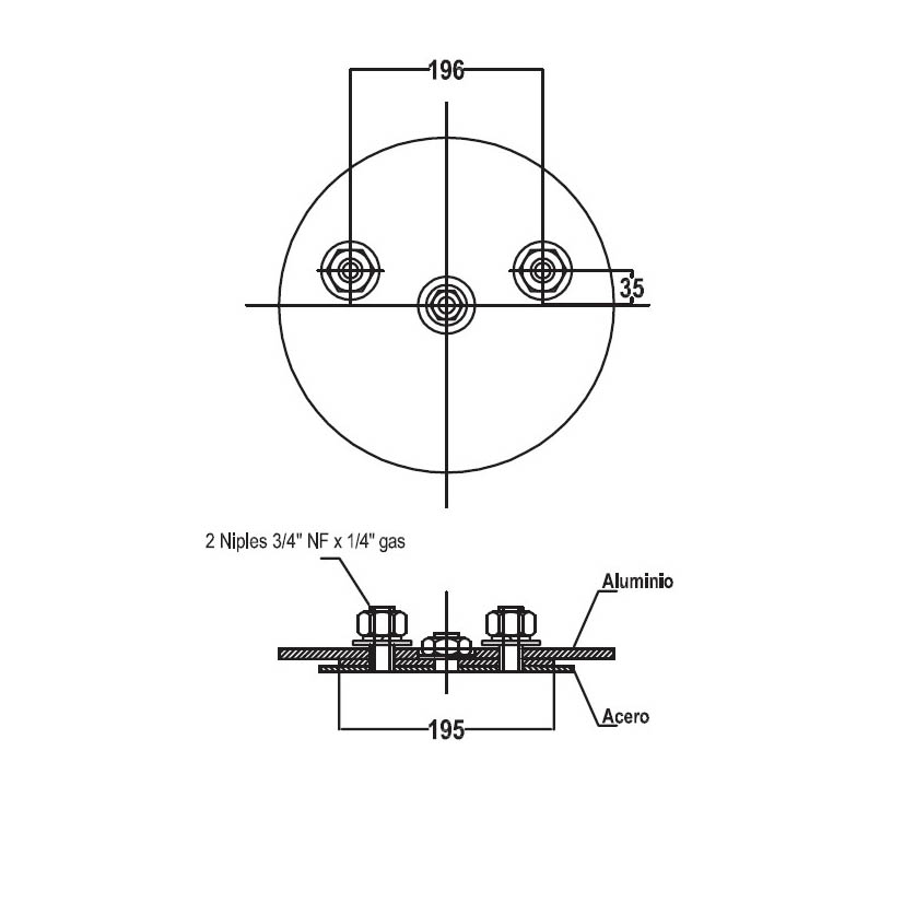 PLAT. SUP.(LKS-1) C/2 NIPLES A 196 MM. DESPL. A 35 MM. P/25XX