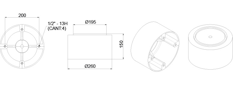BASE ALUMINIO INF. P/25XX - ALTURA 150