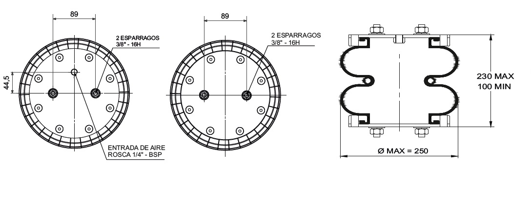 CAMARA DE AIRE BILOBULAR -TIPO 1 - C/ ESP. 3/8" A 89 MM (SUP) - ESP. 3/8" A 89 MM (INF)