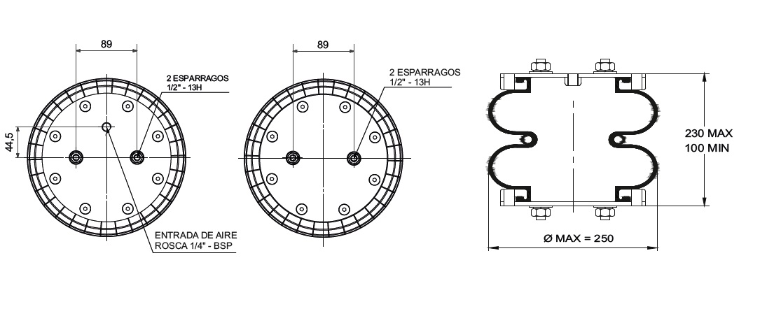 CAMARA DE AIRE BILOBULAR -Tipo 2 - C/ ESP. 1/2" A 89 MM (SUP.) - ESP. 1/2" A 89 MM (INF.)