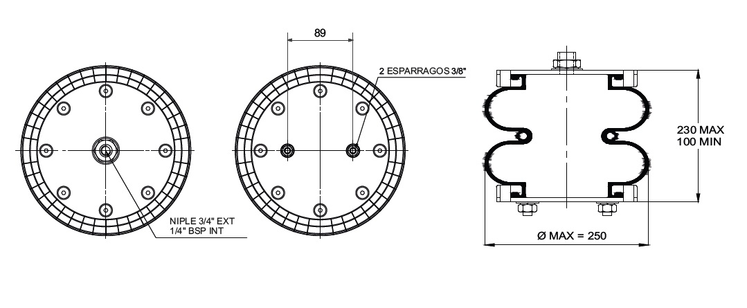 CAMARA DE AIRE BILOBULAR - TIPO 8 - C/NIPLE CTRAL.(SUP) - ESP.DE 3/8"( INF.)