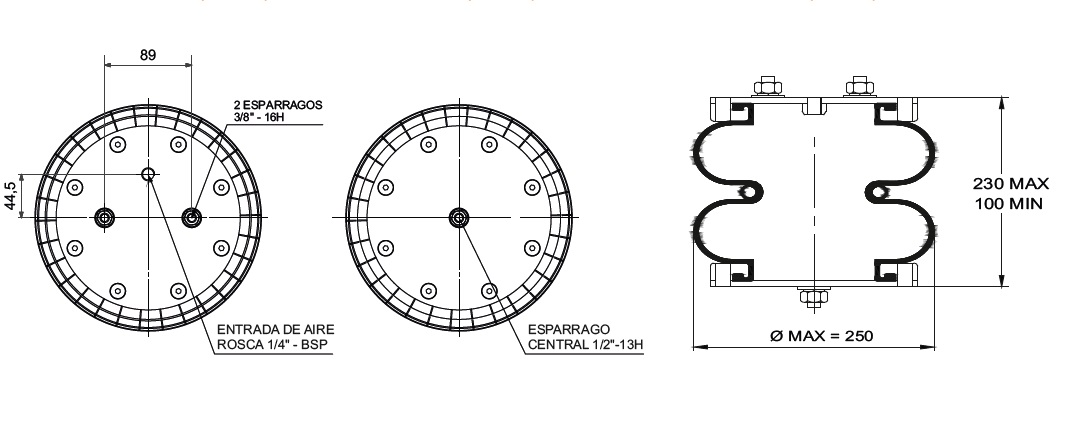 CAMARA DE AIRE BILOBULAR - TIPO 9 - C /2 ESP.3/8" (SUP) - ESP.DE 1/2 CTRAL.(INF.)