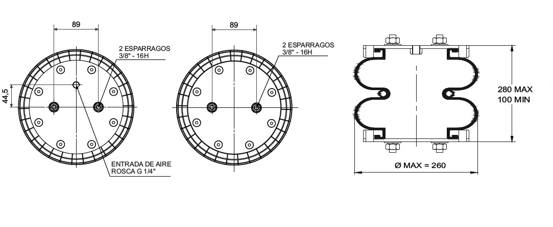 CAMARA DE AIRE BILOBULAR C/SUPLEM -TIPO 1 - C/ ESP.3/8" A 89 MM (SUP) - ESP. 3/8" A 89 MM (INF)