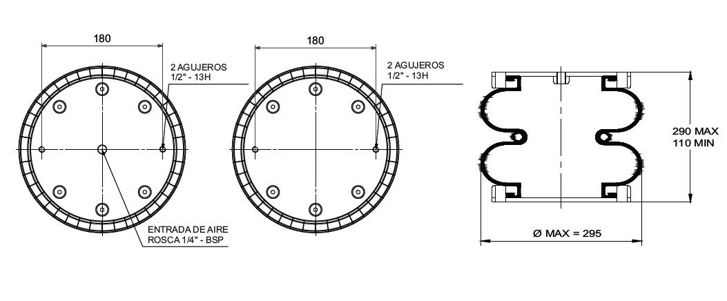 CAM.DE AIRE BILOBULAR TIPO 1 - TAPA LISA Y AGUJ. 1/2" ROSC. A 180 MM - E.AIRE CENTRO